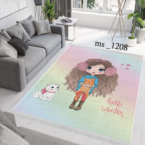 فرشینه اتاق کودک طرح دختر مو فرفری 2 کد 2105